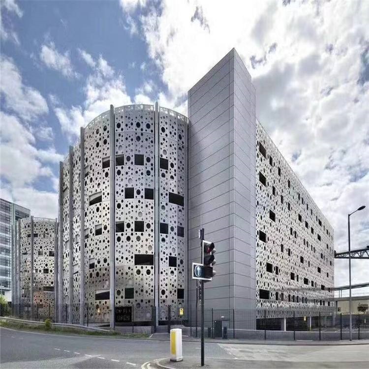 幕墙铝单板造型设计是别的面板材料没办法可比的.往往在建筑幕墙转角部位两面或多面的铝板为1个单元整体,在转角棱线位置不像玻璃那样设定胶缝,那样,这里的幕墙铝单板外形会很大,给生产加工产生一定的难度系数.我们在设计构思幕墙铝单板时,就碰到那样的状况,铝板生产加工后,受厂家铝板喷涂线烤炉洞口限定,铝板横向规格稍大,没办法通过喷涂线.(佛山磐筑建材,专业铝单板生产专家,铝单板厂家)